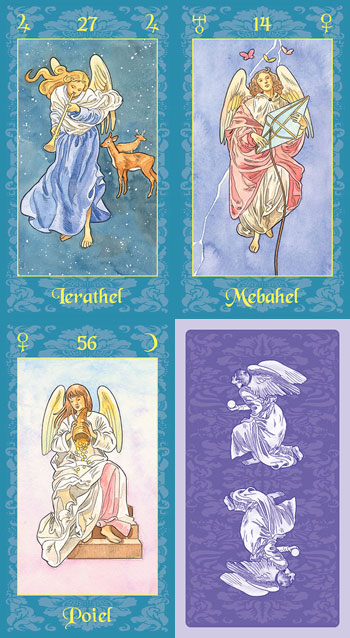 For første gang er et unikt sæt englekort præsenteret i den gnostiske tradition. Hvert nummereret kort viser englens gamle navn, den tilhørende planetariske formation og den ledende planet, mens hæftet giver et nøgleord (der opsummerer hver engels opgave), områder af interesse (følelser, sundhed, arbejde, penge), samt divinatoriske betydninger.