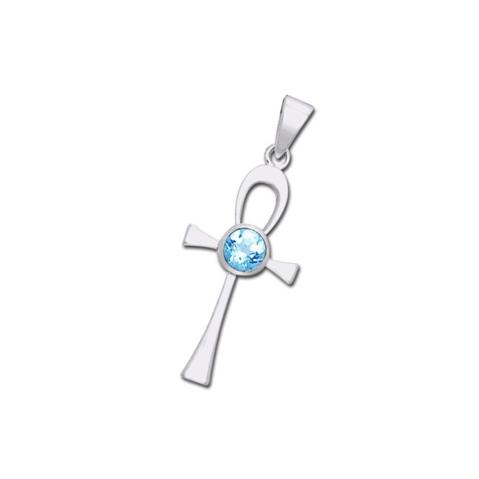 Flot Ankh sølv kors med indfattet Blå Topas