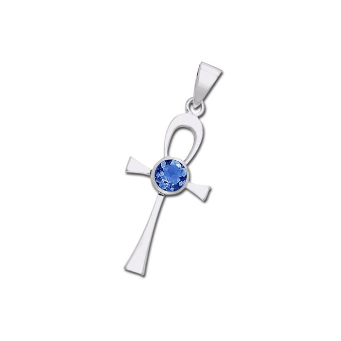 Flot Ankh sølv kors med indfattet Safir