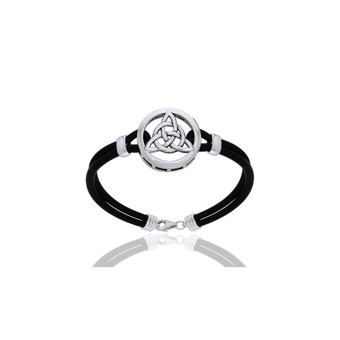 Utrolig smukt og powerfuld symbol armbånd udført i læder med Triquetra - Treenighedssymbolet udført i sølv. Treenigheds armbåndet kan anvendes af både mænd og kvinder