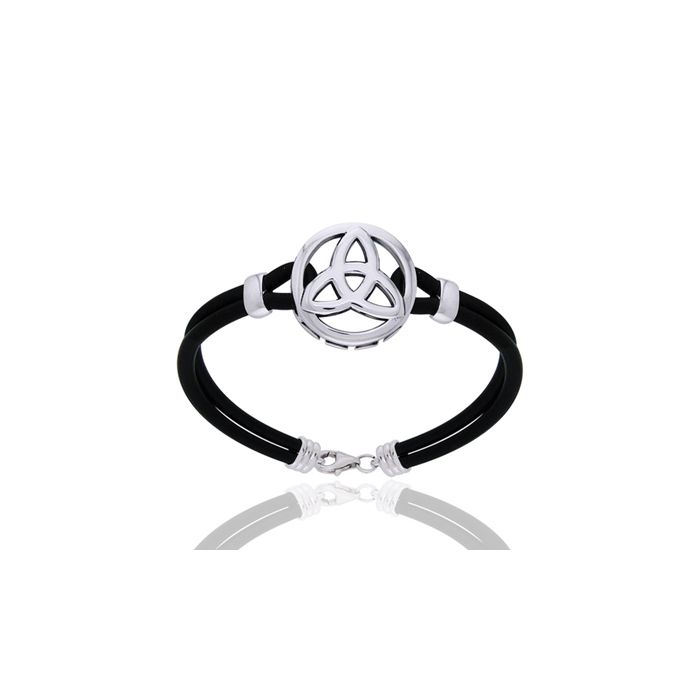 Utrolig smukt og powerfuld symbol armbånd udført i læder med Triquetra - Treenighedssymbolet udført i sølv. Treenigheds armbåndet kan anvendes af både mænd og kvinder