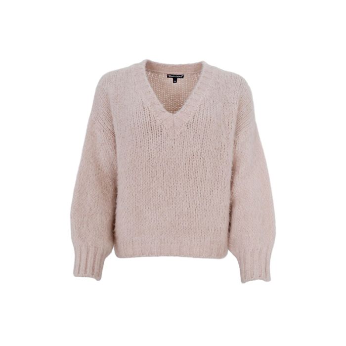 Super blød strik trøje. Kvaliteten er en "håret" stil, og fibrene bevæger sig til et pels-lignende udseende under brug.