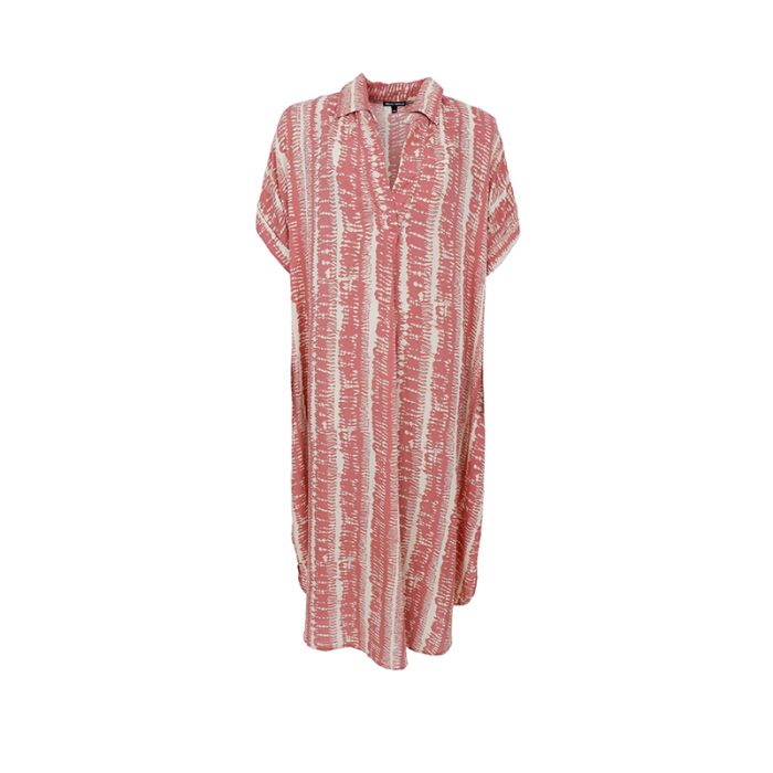 Kortærmet kaftan-tunika med krave og lommer. Ærmerne har opsmøgstropper, der kun er til dekorationsformål.