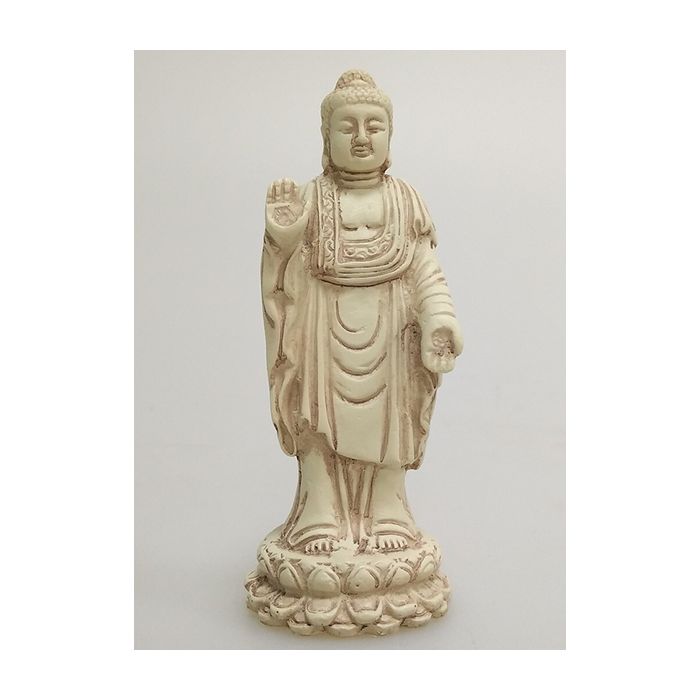 Den stående Buddha skaber en naturlig følelse af ro, fordi figuren signalerer stabilitet og nærvær. Den detaljerede sokkel tilfører en klassisk stemning, mens den løftede hånd kan inspirere til positiv energi og mental klarhed. Ved at bruge Buddha statuer som en del af din indretning tilføjer du ikke blot en flot dekoration, men også et symbol på selvindsigt og fordybelse.