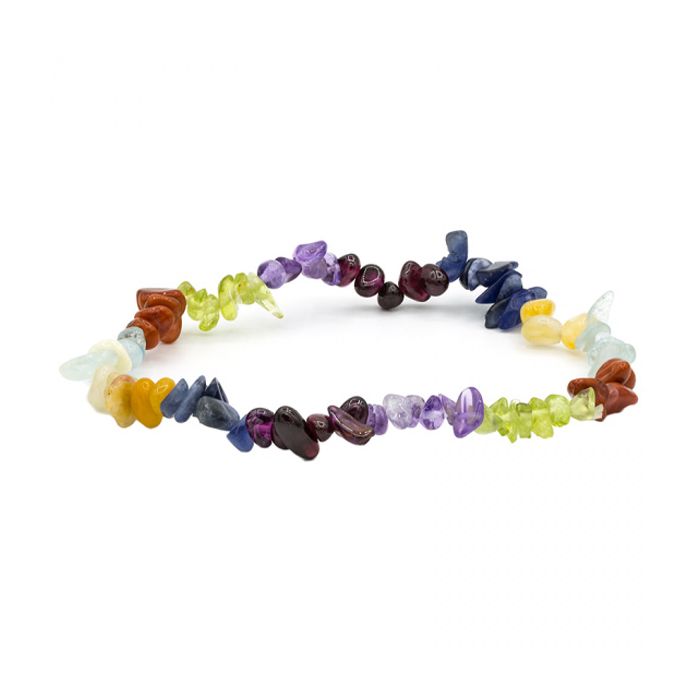 Elastisk armbånd med 7 chakra - sten chips af granat, karanol, gul aventurin, grøn aventurin, turkis, sodalit, ametyst.