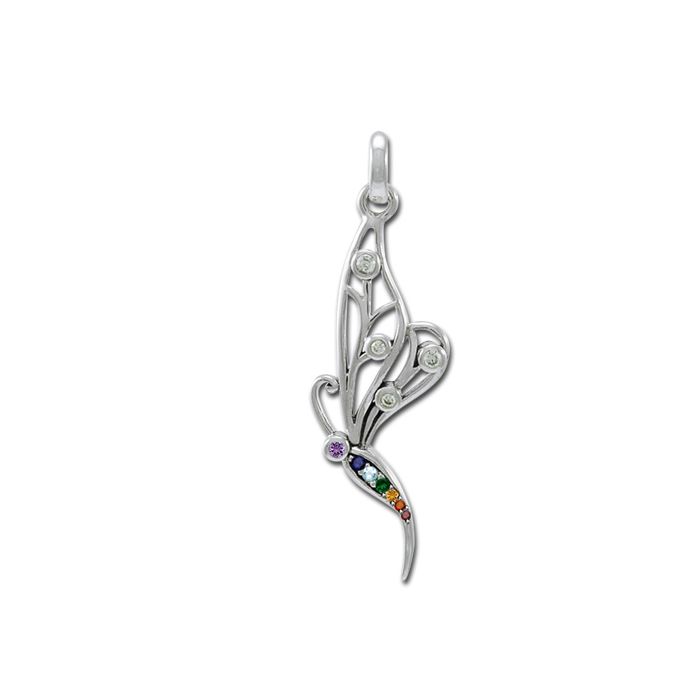 Elegant og smukt sølv vedhæng formet som en guldsmed med indfattet zirkonia og ædelsten