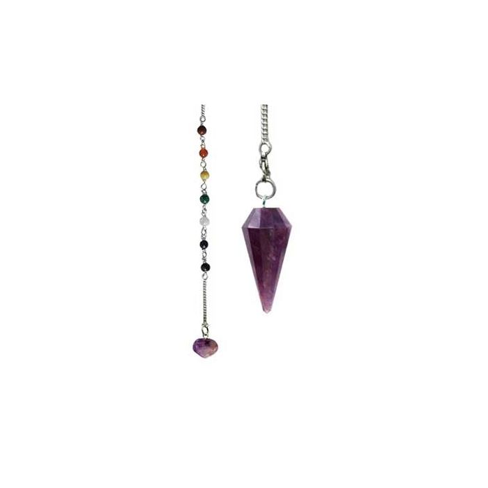 Flot Chakra pendul med de 7 chakra farver og Ametyst