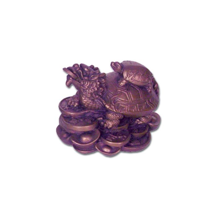 Skildpadden med dragehovedet bringer ligesom pengefrøen velstand og et langt liv. Den er lykkebringende og god til at understøtte nye projekter. Dragehovedet er symbol på lykke, skildpadden et langt liv og babyskildpadden på ryggen er symbol på en ny begyndelse.