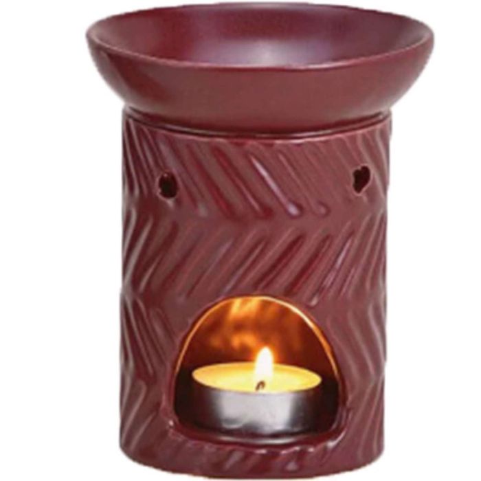 Duftlampe fremstillet af keramik i en varm bordeaux farve. Med fast skål