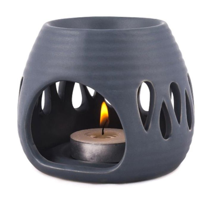 Enkel, lille duftlampe med dråbeformede huller og fast skål.
