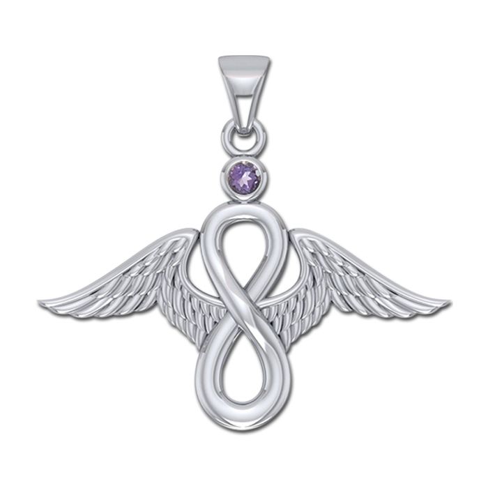 Englevinger - Uendelighedstegnet - vedhæng med Ametyst - u/kæde