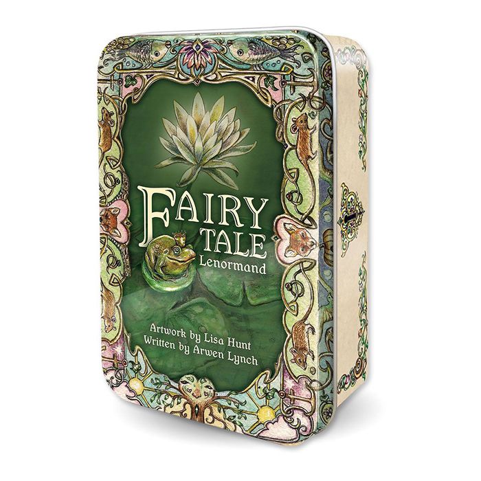 Eventyr har lært os tidløse livserfaringer i århundreder. Lisa Hunts fortryllende kunst trækker os ind i den magiske verden af bønder og prinsesser, drager og dristige gerninger. Ved at væve fantasifulde myter ind i lenormand-strukturen, hjælper Fairy Tale Lenormand læseren med at forbinde sig til kortenes betydninger på meningsfulde og mindeværdige måder. Det 38-korts multikulturelle sæt, der præsenteres i en praktisk tin-æske, omfatter et ekstra gentleman-kort og lady-kort til individualiserede læsninger.