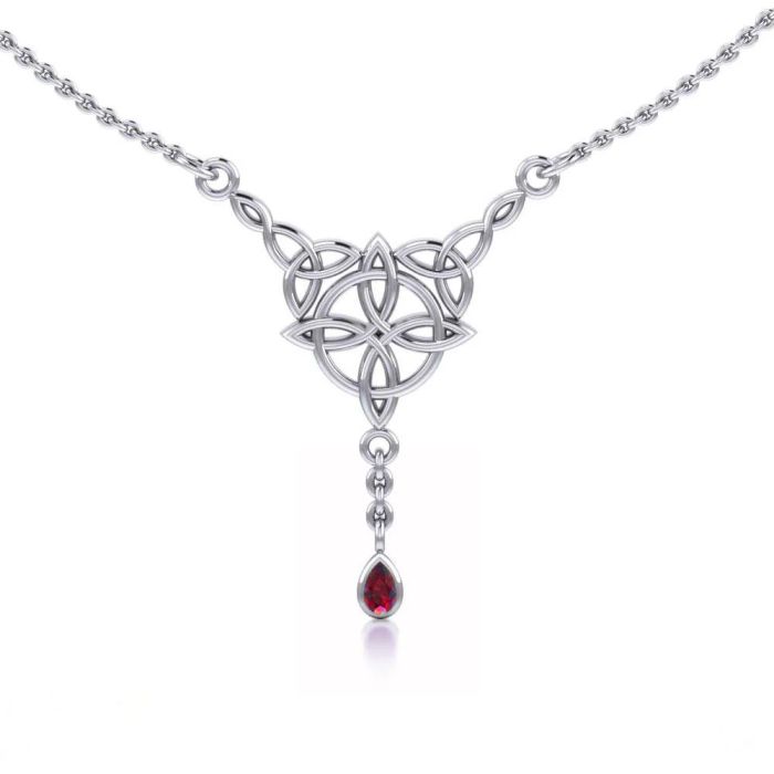 Om Halskæde med Keltisk Livshjul og Rubin