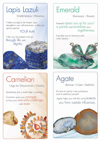 Disse 33 smukt designede kort viser den individuelle skønhed og budskaberne i de vigtigste helbredende sten. Healing Stone-kortene i sig selv kan bruges som en energikilde og som inspiration til livets spørgsmål.