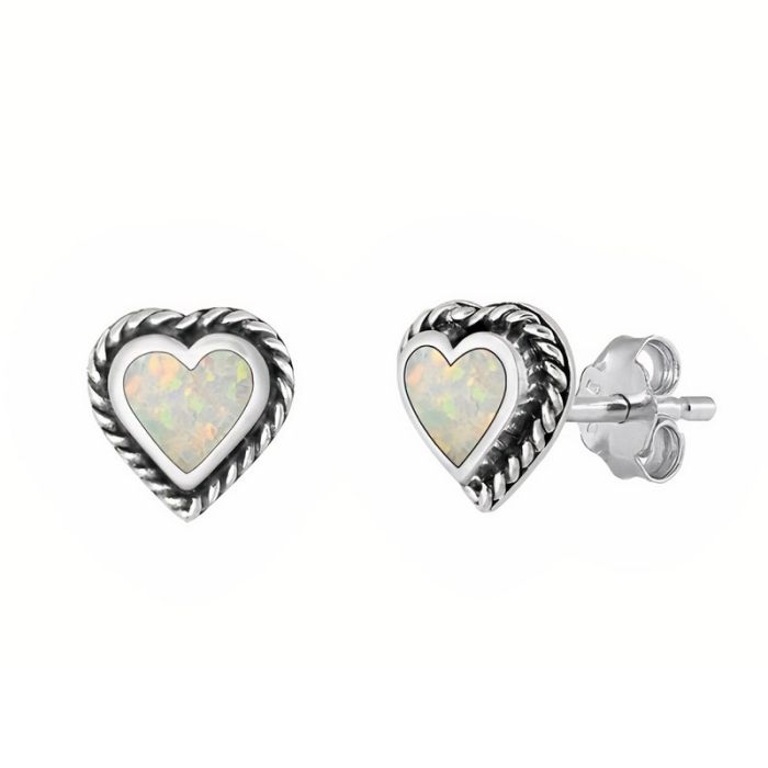 Hjerte Ørestikker med Opal - pr par