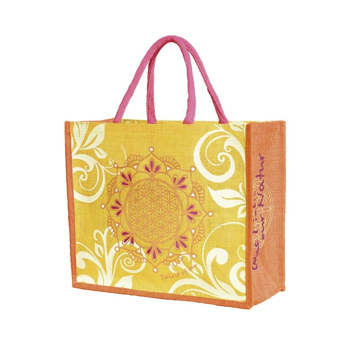 Fremstillet i naturlig jute med bomuld, rummeligt stabilt design, med "rydde-ren" indvendig belægning og stor livets blomst design. For kærlighed til naturen!