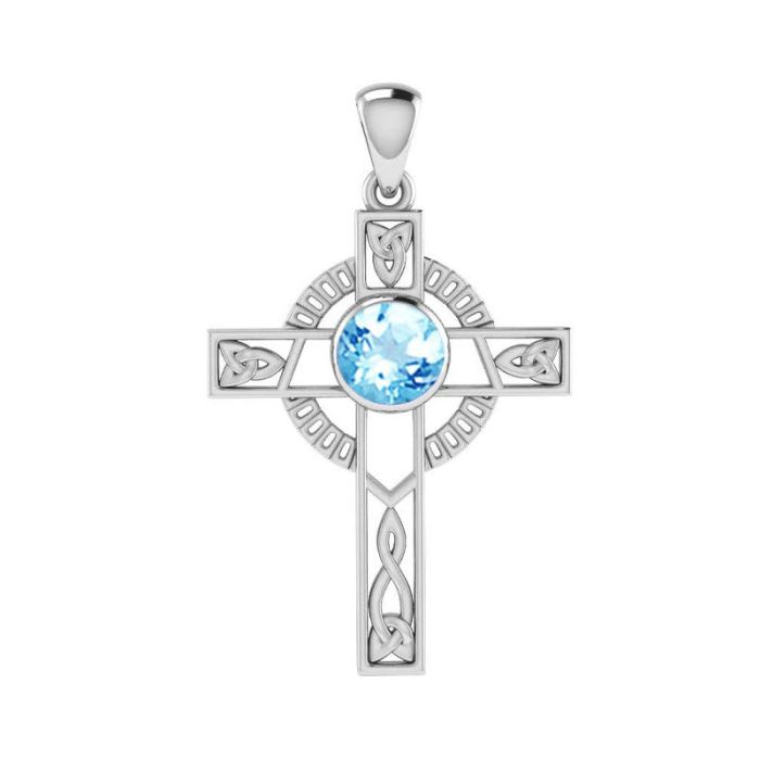 Flot Keltisk sølv kors med Triquetra - Treenighedssymbolet og Blå Topas