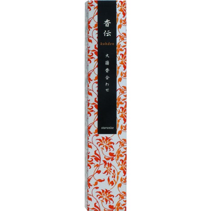 Som en fin kop økologisk kaffe og en eksklusiv flaske vin, fås japanske røgelser også i ekstraordinært fine kvaliteter. Kohden-serien er et godt eksempel på dette. Den bedste gaveide til en god ven, som holder af røgelse (eller kunne komme til det). Her får du klassisk japansk røgelse i rene dufte, pakket i en eksklusiv æske og med en ekstra fin lille røgelses-holder. Arabesk-mønstrene på æskerne er inspireret af kulturerne langs Silkevejen, som før i tiden bragte kostbare røgelses-råmaterialer fra Mellemøsten og de arabiske lande til Kina og Japan.