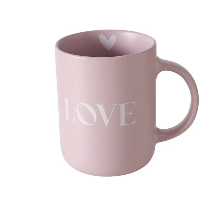 Flot krus med påtryk "Love" udvendig og et lille hjerte indvendig