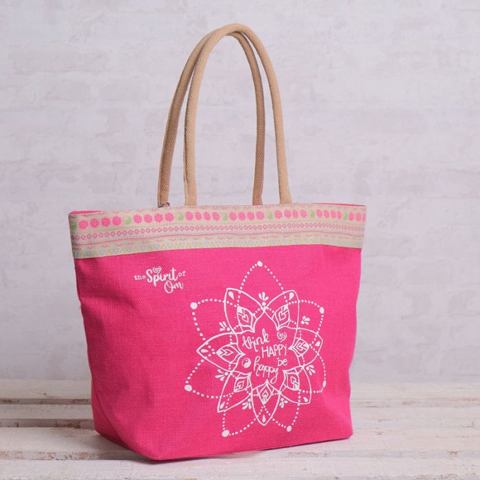 Flot og stilfuld dameshoppe taske inklusive lynlås og inderlomme. Shopping er endnu sjovere med denne taske. Tasken lavet af kraftig jutefiber, er super rummelig og har en praktisk inderlomme til nøgler eller mobiltelefon. Derudover er bunden forstærket, hvilket gør at tasken bevarer sin form. De flotte mandala print, de livlige farver og de smukke vedhæng er særligt tiltalende.