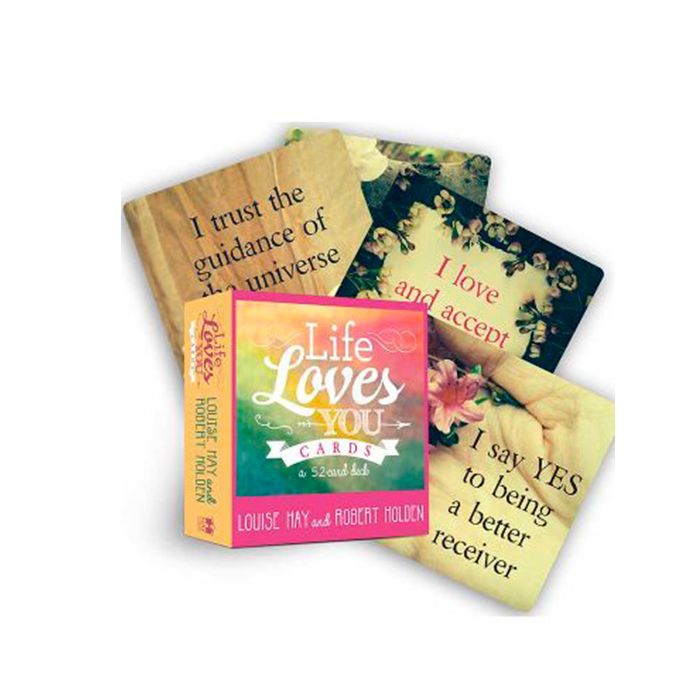 Skabt af Louise Hay og Robert Holden, medforfattere til Life Loves You: 7 Spiritual Practices to Heal Your Life, udforsker LIFE LOVES YOU CARDS – ligesom deres bog – den dybere betydning og den praktiske anvendelse af Louises signatur-affirmation: Life loves you (Livet elsker dig).