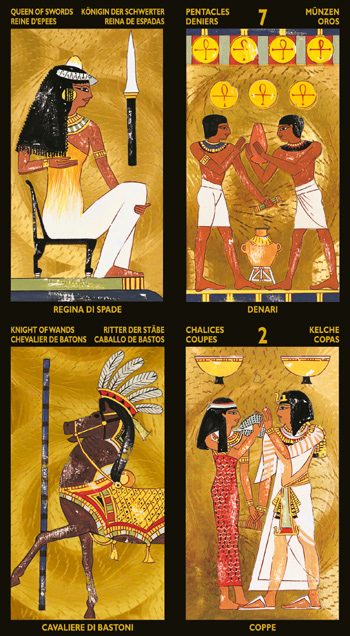 Nefertari, Ramses II’s brud, hjalp sin mand med at herske i Egypten. I sit utrolige liv, var hun vidne til den store ekspansion af hendes land og nød tilbedelsen fra sin hengivne mand. Efter Nefertaris død byggede Ramses hende en fantastisk grav, der er næsten intakt den dag i dag. Dette tarotsæt genskaber atmosfæren og symbolikken, som Nefertari elskede - hun betragtes som værende Egyptens Lys og et symbol på de smukkeste aspekter af denne elegante og sofistikerede civilisation. Den typisk todimensionale egyptiske kunst får utroligt liv og lys af den smukke guldfolie baggrund. Ved at trække på fascinationen af og mysterierne om den egyptiske kultur har Alasia skabt et smukt sæt, der også er anvendeligt til divinatoriske formål.