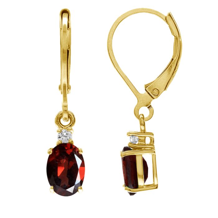 Øreringe med Rød Granat - 26mm - pr par - Forgyldt