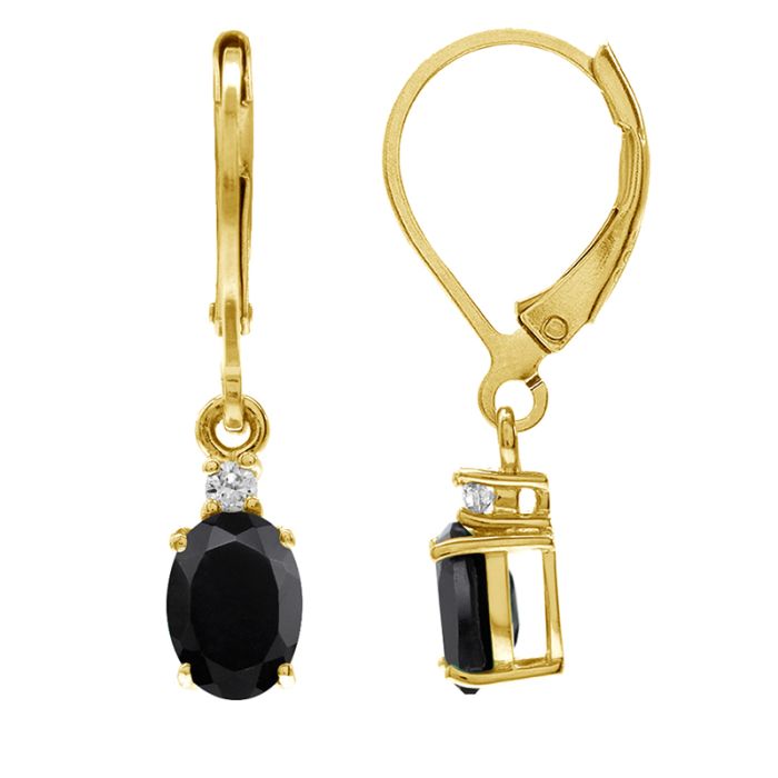 Øreringe med Sort Onyx - 26mm - pr par - Forgyldt