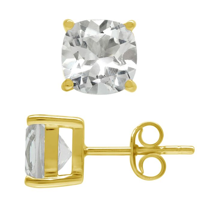 Ørestikker med Klar Topas - 8mm - pr par - Forgyldt