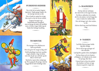 Teksterne på kortene er mesterligt oversat til dansk af tarotmester og forfatter Søren L. Rasmussen.