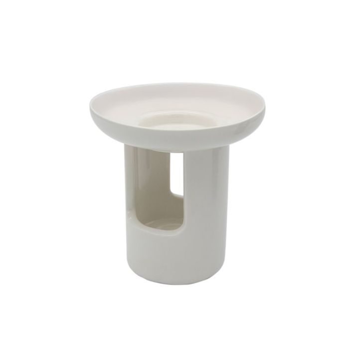 Den minimalistiske, hvide duftlampe passer naturligt ind i enhver indretning - fra nordisk og moderne til klassisk. Du placerer blot et fyrfadslys i bunden, fylder vand og din favorit duftolie/æteriske olie i skålen øverst, og så breder den behagelige duft sig stille og roligt i rummet.