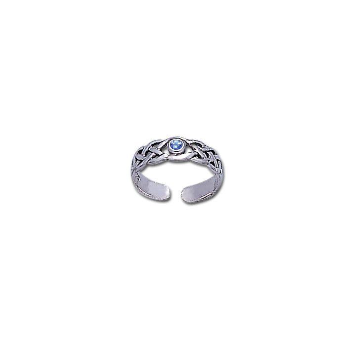 Flot justerbar i keltisk design med indfattet Safir
