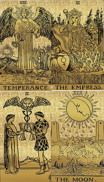 Oplev her, med Black & Gold Tarot, et tarotsæt med en helt ny tilgang til farve og design. Baseret på billedsymbolikken i det traditionelle Rider-Waite-Smith tarotsæt og trykt med elegante guld-folie detaljer, er dette sæt et betagende syn når kortene er lagt ud i et oplæg. Uanset om du er tarotlæser eller samler, vil du se nye muligheder og fortolkninger i dette kreative kunstværk. Med en lækker æske skiller dette tarotsæt sig virkelig ud fra resten. Indeholder et 78 kort samt instruktionshæfte.