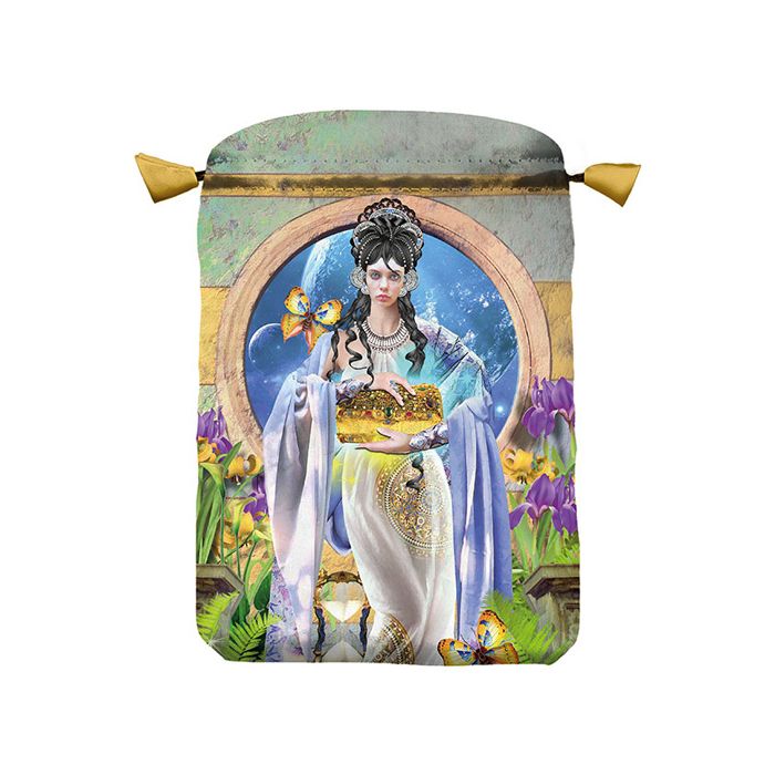 Lækker tarotkort / englekort pose i Satin med tryk af Apokalypsis - Johannes Åbenbaring. Pose er med træksnor lukning der kan bruge til alle std kort størrelser.