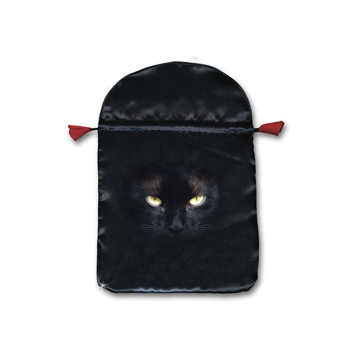 Lækker tarotkort / englekort pose i Satin med tryk af en sort kat. Pose er med træksnor lukning der kan bruge til alle std kort størrelser.
