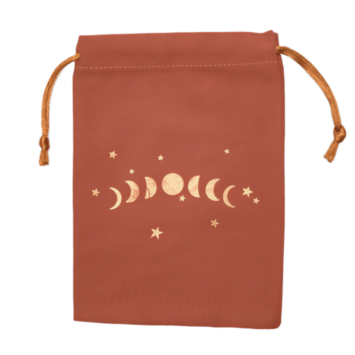 Lækker tarotkort / englekort pose med broderet Måne. Posen er med træksnor lukning der kan bruge til alle std kort størrelser.