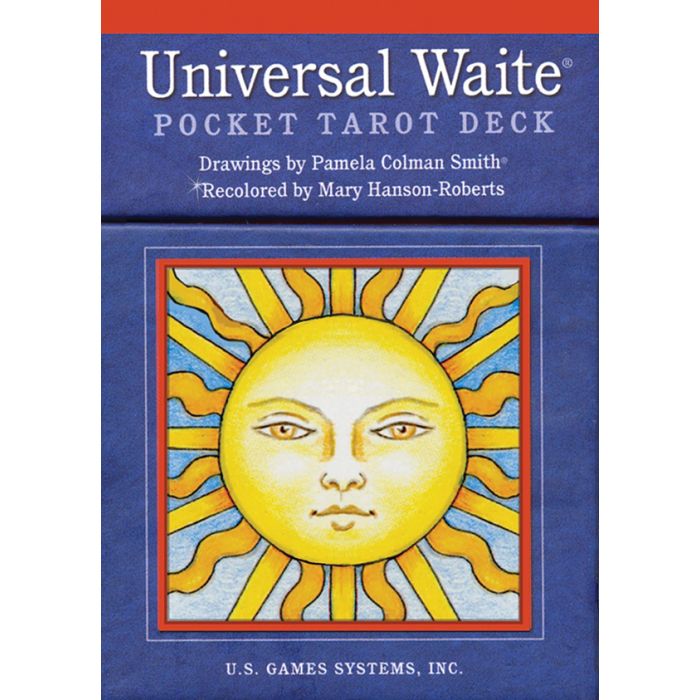 Nyd Universel Waite tarot i en bekvem lommestørrelse. De 78 kort kommer i en robust boks. Universal Waite tarot viser den klassiske Rider-Waite Tarot med nye tiltalende farver, der virker beroligende og inspirerende. De ikoniske tegninger af Pamela Colman Smith er blevet farvelagt af kunstneren Mary Hanson-Roberts. De oprindelige betydninger og den rige symbolik i Rider-Waites illustrationer udtrykkes her med større klarhed og friske, nye detaljer. Det forbedrede billedsprog gør Universal Waite tarot Deck mere tilgængelig for begyndere og mere tiltrækkende for erfarne tarot læsere. Et "must-have" tarotsæt! Indeholder hæfte på 36 sider.