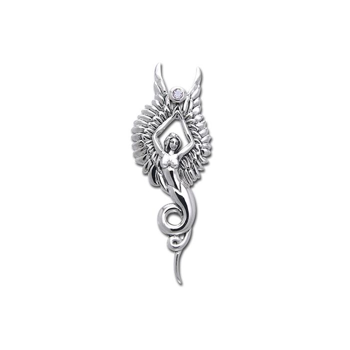 Sødt sølv vedhæng formet som en engel og indfattet med Bjergkrystal