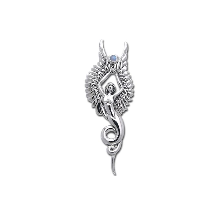 Sødt sølv vedhæng formet som en engel og indfattet med Månesten