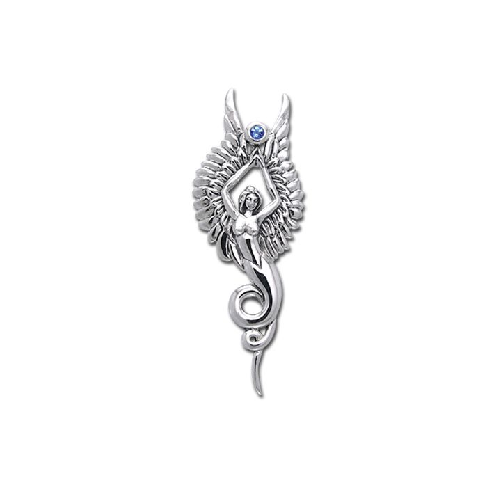 Sødt sølv vedhæng formet som en engel og indfattet med Safir