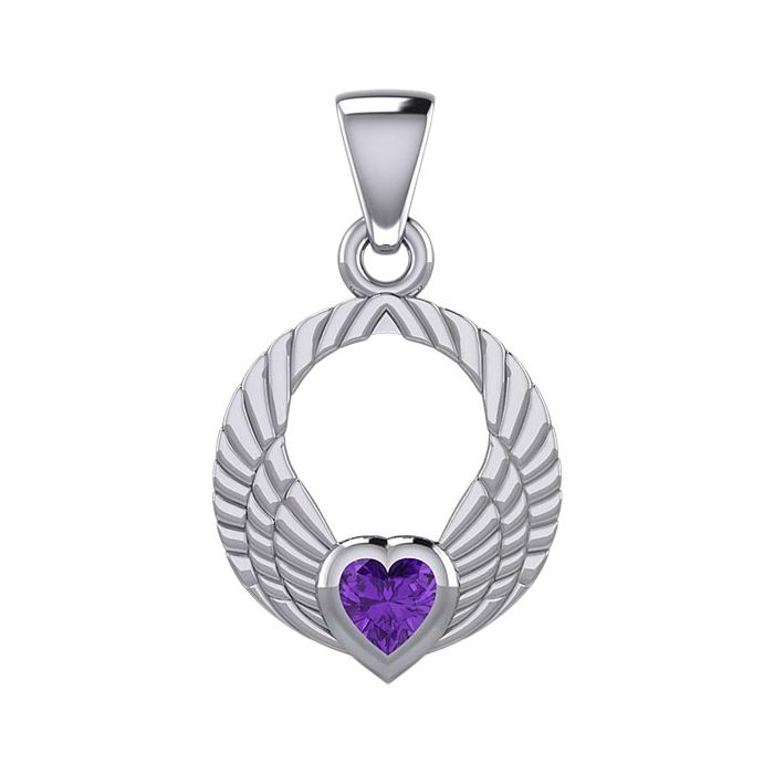 Vedhæng Englevinger - med Ametyst hjerte - 23mm - u/kæde