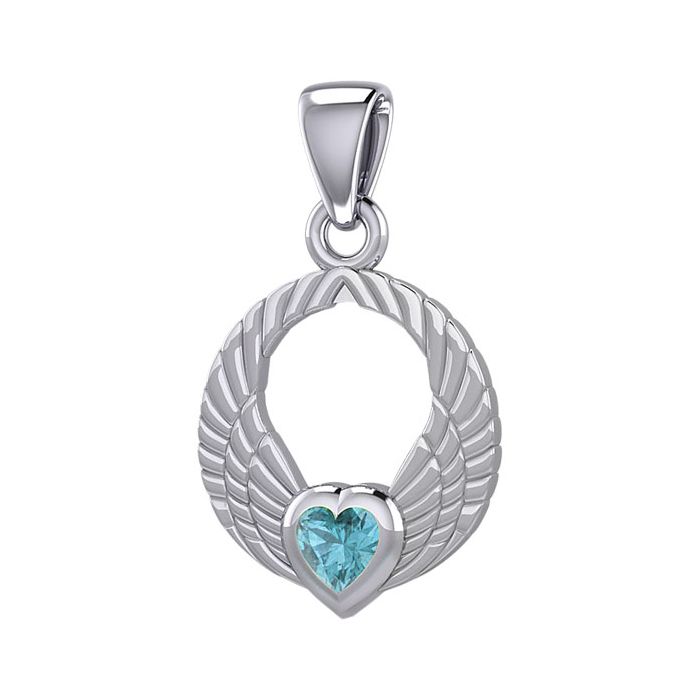 Vedhæng Englevinger - med Blå Topas hjerte - 23mm - u/kæde