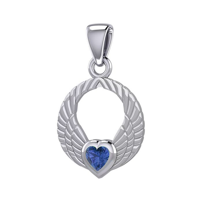 Vedhæng Englevinger - med Safir hjerte - 23mm - u/kæde