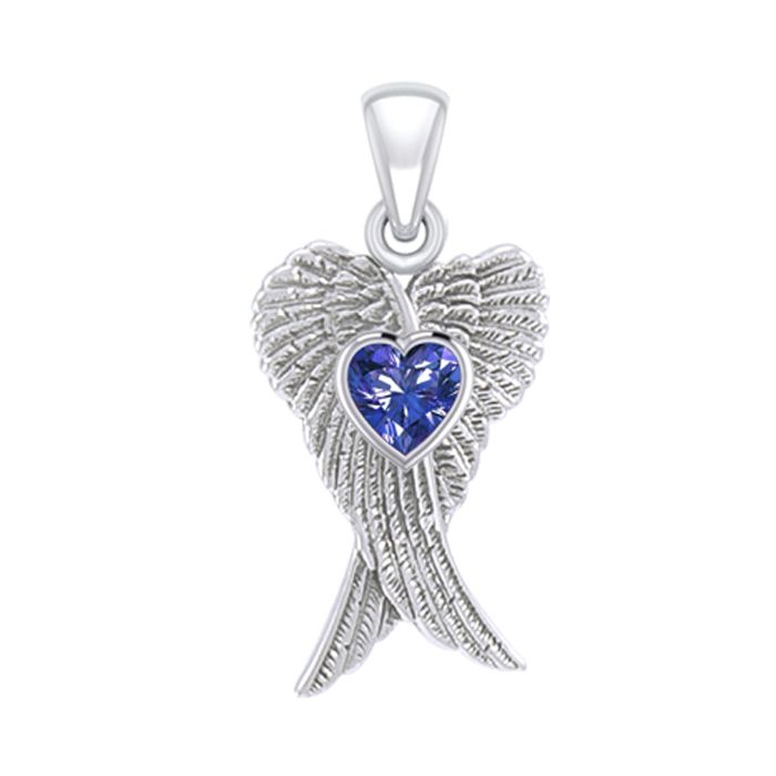 Vedhæng Englevinger - med Safir hjerte - 26mm - u/kæde