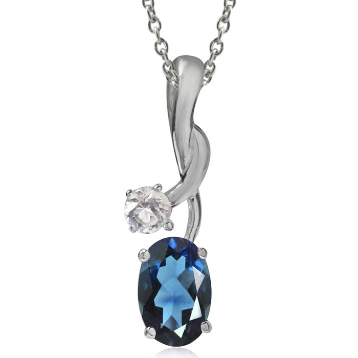 Vedhæng med Blå Topas - 16mm - m/kæde