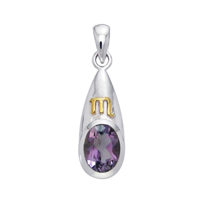 Vedhæng Skorpionen Stjernetegn med Ametyst - 28mm - u/kæde