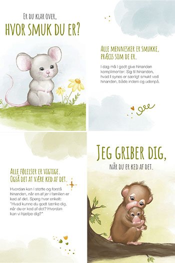Som impuls om morgenen, et lille ritual om aftenen eller en påmindelse ind i mellem: På en legende måde kan kortene integreres i familielivet og danne grundlag for dybe og dejlige samtaler og et stærkt sammenhold. Den bedste tid er, når vi mærker, at vi er en familie: Vi er os!