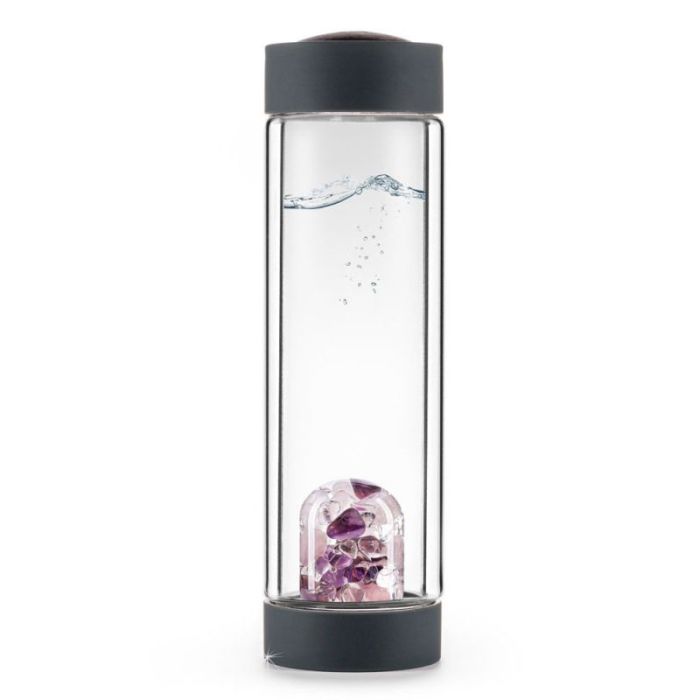 WELLNESS. Denne velafbalancerede sammensætning er allerede blevet brugt i flere hundrede år til at inspirere vand af utallige mennesker over hele verden. Eksperter hævder, at ametyst stimulerer sindet og dulmer følelser. Rosenkvarts fremmer ro og harmoni. Bjergkrystal er en sten for klarhed og opfattelse. Som en kombination bruges de for deres vidunderligt opkvikkende effekt.