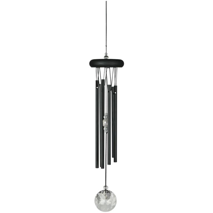 Smukt vindspil lavet i sort finish aske træ, 6 sorte aluminiumsstænger