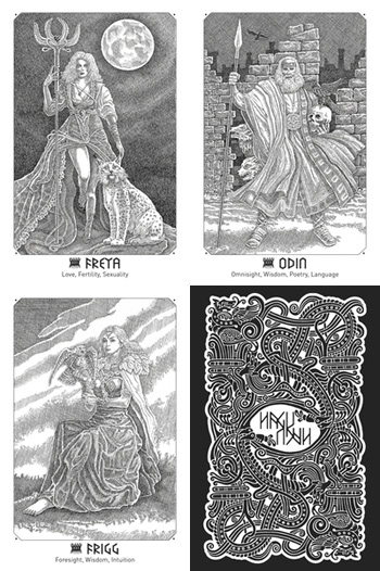 Baseret på den magtfulde mytologi fra Norden, bringer dette orakelsæt på 81 kort gammel visdom ind i dit liv. Indviklede pen- og blæktegninger er sjælfulde repræsentationer af Eddas, de fantastiske skriftlige beretninger om legenderne om det gamle. Disse kort, sammen med den informative guidebog, er designet til at blive brugt til divination, vejledning og åndelig forbindelse. Dette sæt er skabt af en berømt kunstner og mangeårig deltager i den hedenske fornyelse og er en velkommen tilføjelse til dem, der ønsker at arbejde dybere med det nordiske panteon.